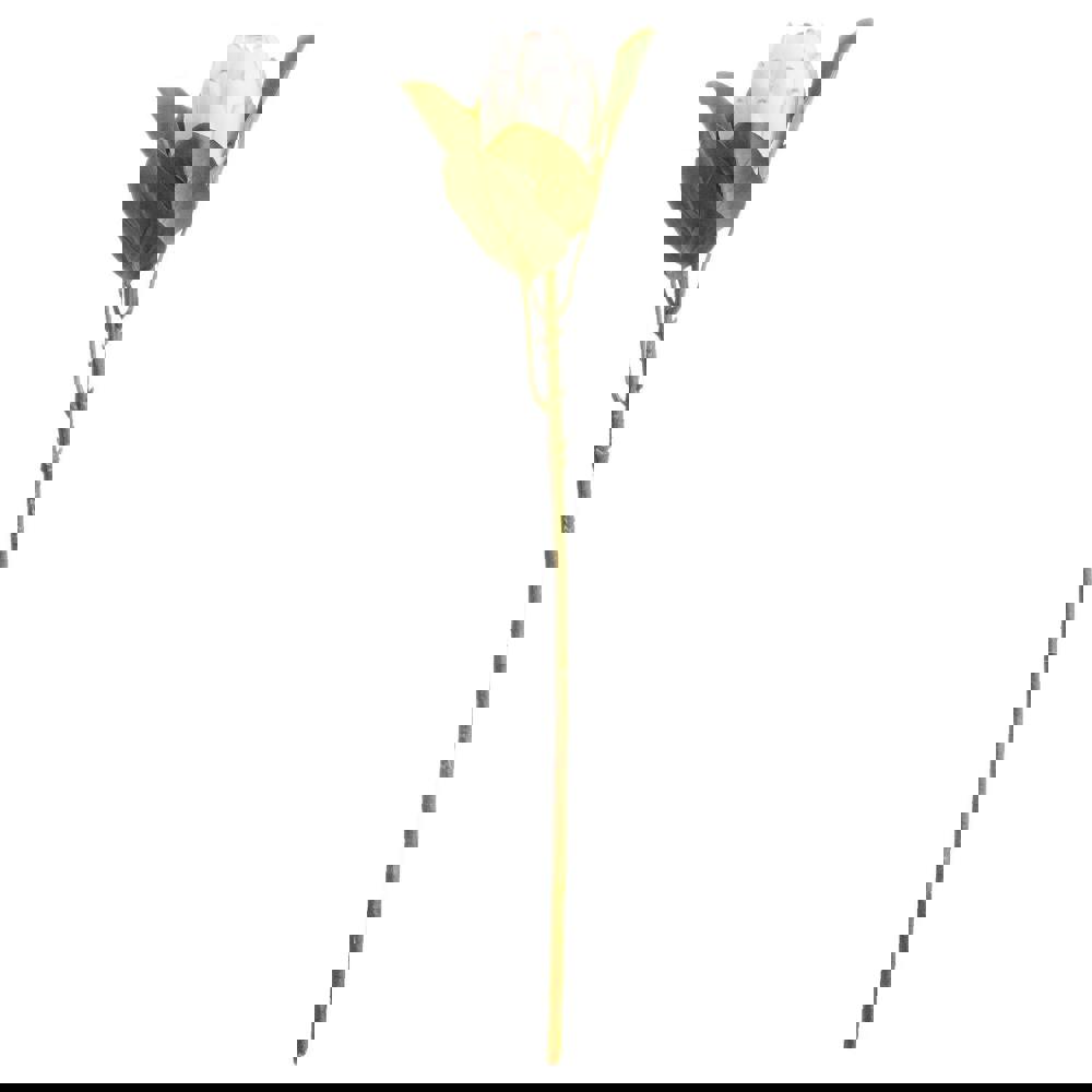 Refresh your artificial flower display with this Closed White Protea stem. Designed to reflect the look of a protea in its budding stage, it features tightly packed creamy-white petals arranged into a distinctive spherical shape. The closed bloom style makes it an easy choice for adding structure and interest to arrangements without overwhelming other stems.