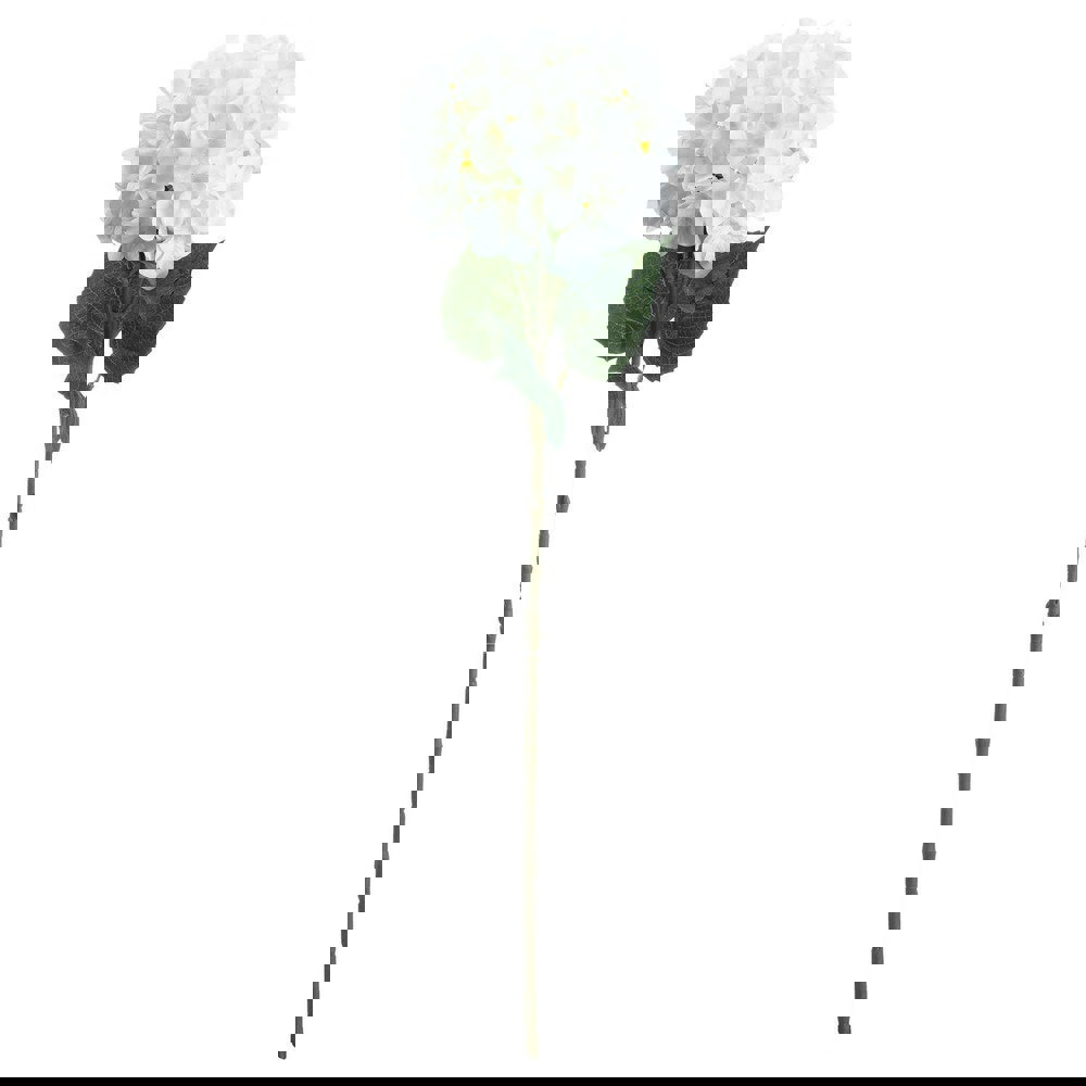 This artificial single stem Hydrangea is designed to bring a fresh floral look to your home with none of the upkeep. Featuring both flowers and leaves, it offers a simple way to add a decorative touch to shelves, sideboards or table displays.