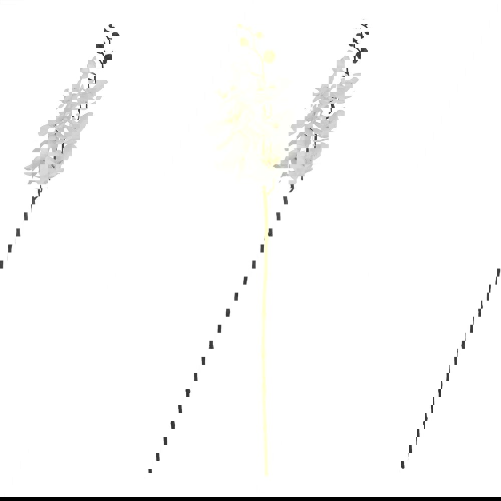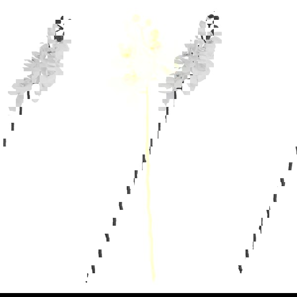 Lifelike white orchid stem with translucent petals delivers year-round beauty. Perfect for creating dramatic vertical displays. Pairs seamlessly with mirrors and contrasting flora.