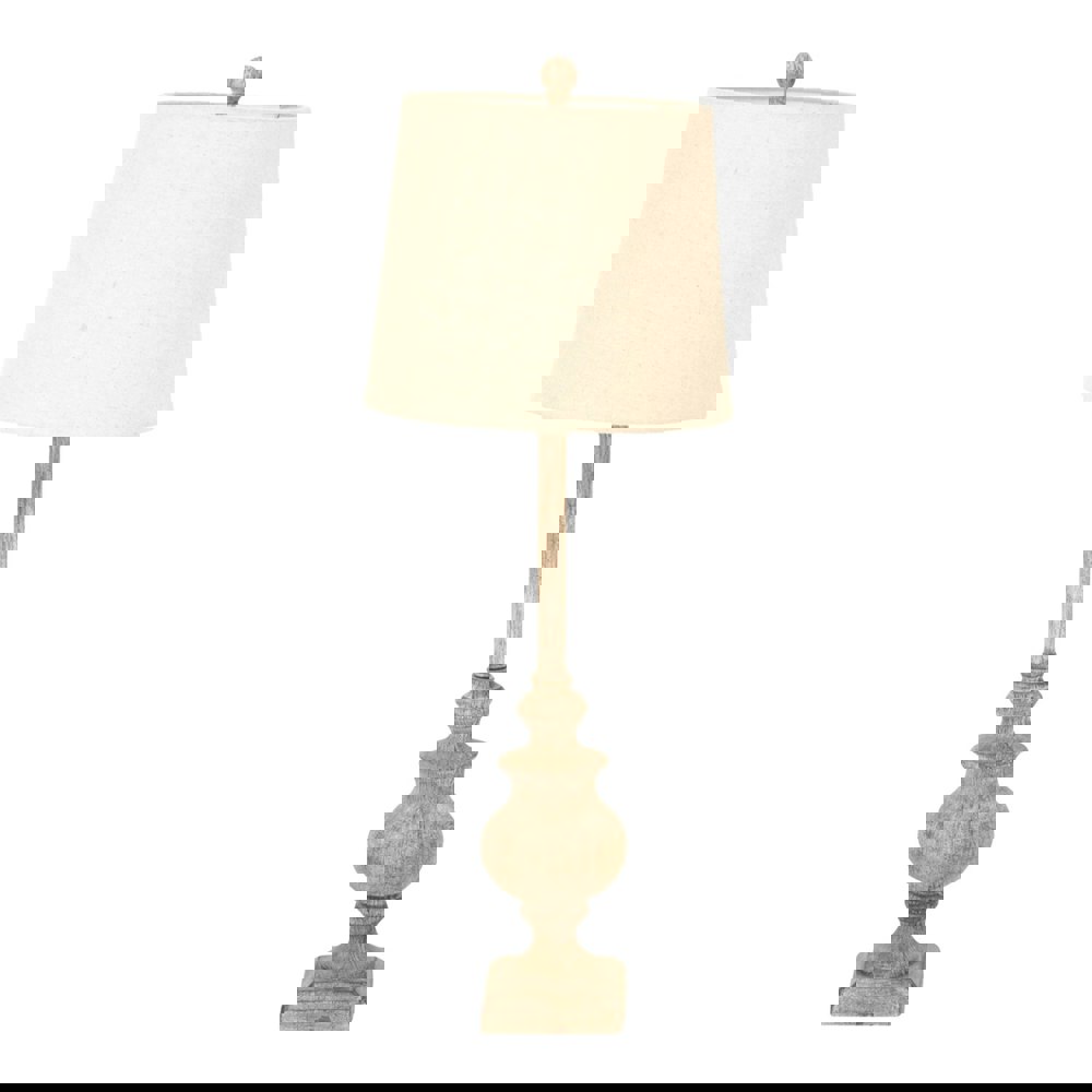 Finished in a plain design and a neutral palette, this lamp is easy to coordinate with different décor styles, from traditional to more contemporary settings. Made from linen and resin, it offers a considered balance of form and function, making it a versatile choice for side tables, consoles and bedside surfaces.