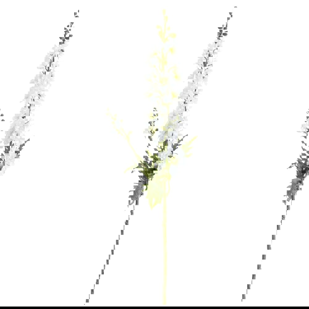 This White Delphinium Stem is an artificial floral stem designed to bring height and structure to your arrangements. Delicately clustered florets are set along a tall, vertical stem, with detailed petals arranged to create a natural-looking display. The white colouring offers a clean, versatile accent that suits a wide range of interior styles and floral combinations.