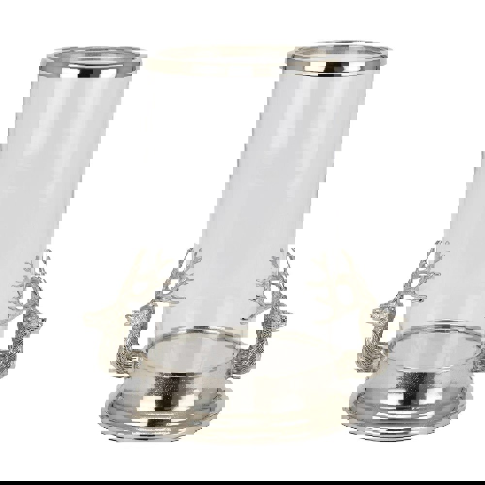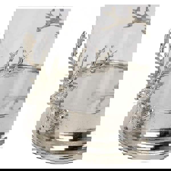The Silver Stag Heads Hurricane Lantern is a decorative piece designed to bring a distinctive woodland-inspired accent to your interior. Featuring intricate silver stag head detailing, it creates a striking focal point for styling on a console table, sideboard or mantelpiece.