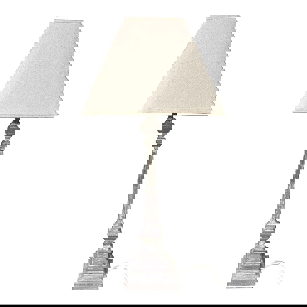 Handcrafted and made from linen and wood, this table lamp is fitted with an on/off switch for straightforward everyday use. Assembly is required, and the bulb is not included. Supplied with a UK plug.