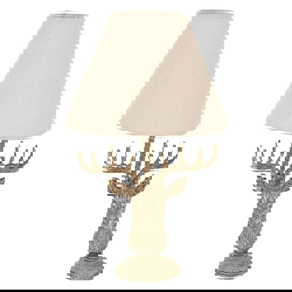 This distinctive Table Lamp features a stag head design with a stonewashed finish, creating a sculptural focal point for sideboards, consoles or bedside tables. The textured look brings character to your lighting, while the neutral tones make it easy to style with a wide range of interior schemes.