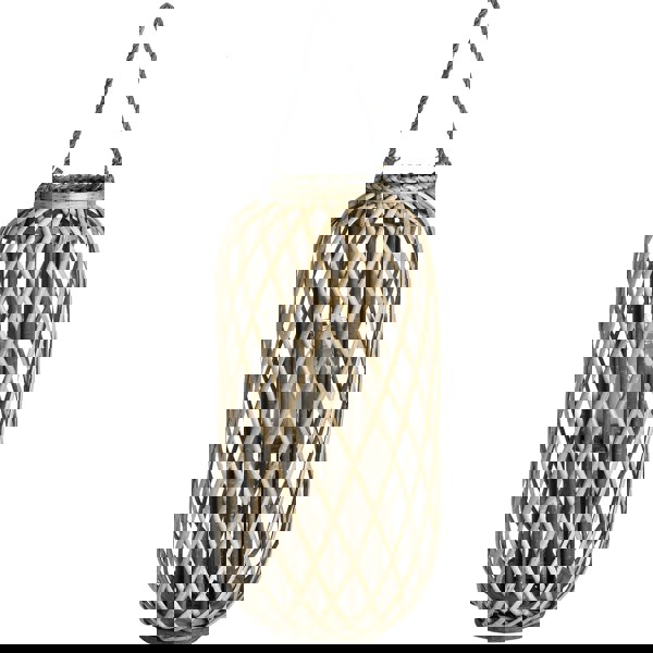 The wicker-style design features an external frame with a candle support structure inside, helping to create dramatic lighting effects when used with LED candles. Finished with a rope handle at the top, it is easy to move and position wherever you want a warm, decorative glow.