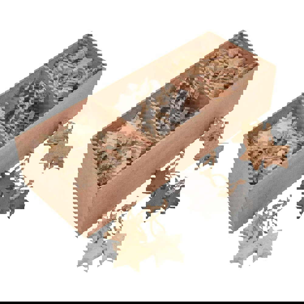 This pack of 90 wooden star hanging decorations is designed to bring a natural, textured look to your display. Each star features an authentic wood grain pattern, creating subtle variation across the set for a more organic finish.