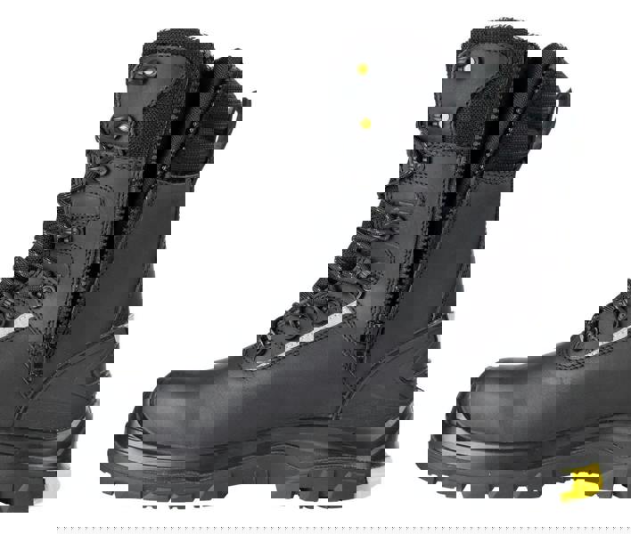 Leather non-metallic S3 safety combat boot with hi-visibility detailing. Side zip and ankle Impact Support Technology