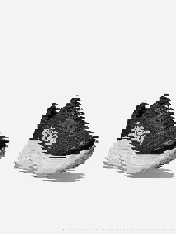 HOKA Kids Rincon 4 trainers in black combine lightweight construction with cushioning and breathable support. This big kids style takes a Mini Me approach and uses an air mesh upper made with 100% recycled yarns, paired with a foot-hugging fit. A TPU toe cap and heel add durability, while the rubber sole is suited to recess wear.