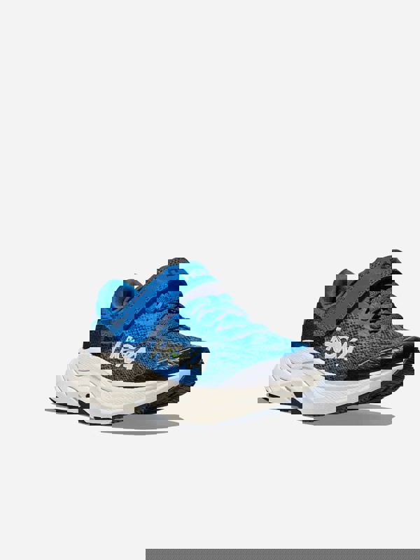HOKA Kids Rincon 4 trainers in blue. Lightweight construction and cushioned feel for everyday wear. Breathable materials and a flexible design keep the fit easy to wear, with HOKA’s signature smooth ride stated in the product details.