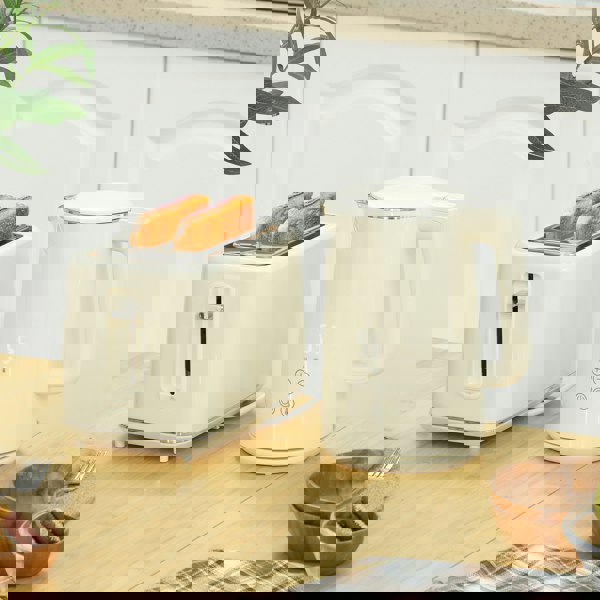 Mornings made sleek with this HOMCOM kettle and toaster set. Both the kettle and toaster are beautiful and look great in your kitchen Experience rapid boiling with the 3000W kettle: boils single-cup of water in roughly 42 seconds. The two slice toaster means you'll never go hungry at breakfast, with seven browning levels to toast your bread how you want - it's great for the whole household.
