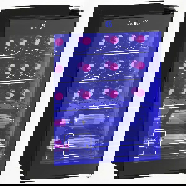 Your delicious wine collection, kept chilled and illuminated beautifully in this HOMCOM wine cooler fridge. The 16-bottle design is perfect for everyone, whether you're the novice or the expert; look to the 5-18°C adjustable temperature to set it however cold you desire. Inside there are plenty of lights to illuminate so you can see inside properly. To adjust the temperature and lights of this small wine fridge, all you have to do is use the front touch panel.