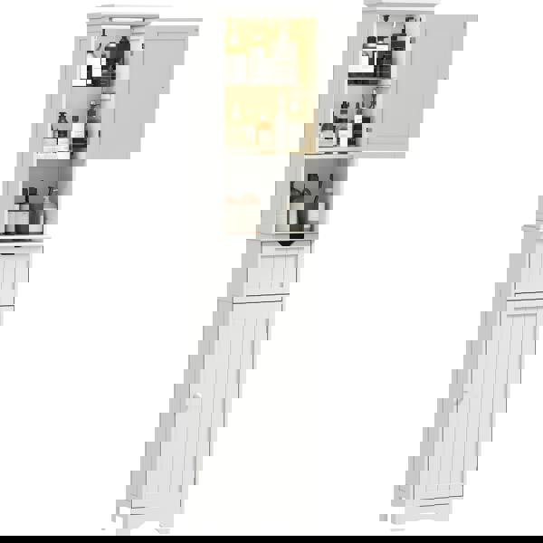 Illumination made instant with our HOMCOM bathroom cabinet. It's fitted with motion sensor LED lights - working within a three-metre range to provide light instantly; turning off to prevent power wastage. With an upper and lower cupboard, drawer and shelf, there's plenty of storage for all bathroom essentials and more, complete with an anti-tipping kit to secure to your wall.
