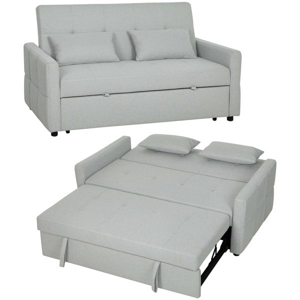 Even in small spaces, you can enjoy comfort at any time of the day - with this HOMCOM sofa bed. The three-part design means you can use it as a sofa, a lounger or bed. Filled with high-density foam, this is comfortable piece; also highly resilient to retain the shape. Wrapped in smooth linen-look upholstery and complete with two pillows.