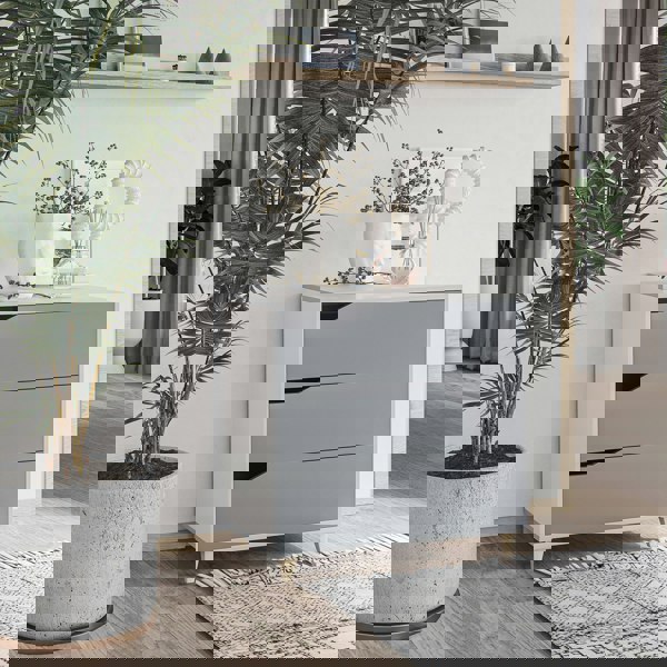 Style and organisation come together - this HOMCOM freestanding dresser. Comes with three drawers to keep clothing folded and organised. Made from particle board and MDF blend, the body is durable, with solid wood legs for full support. Side indent handles to open/close each drawer easily. A simple and spacious way to keep the home tidy.