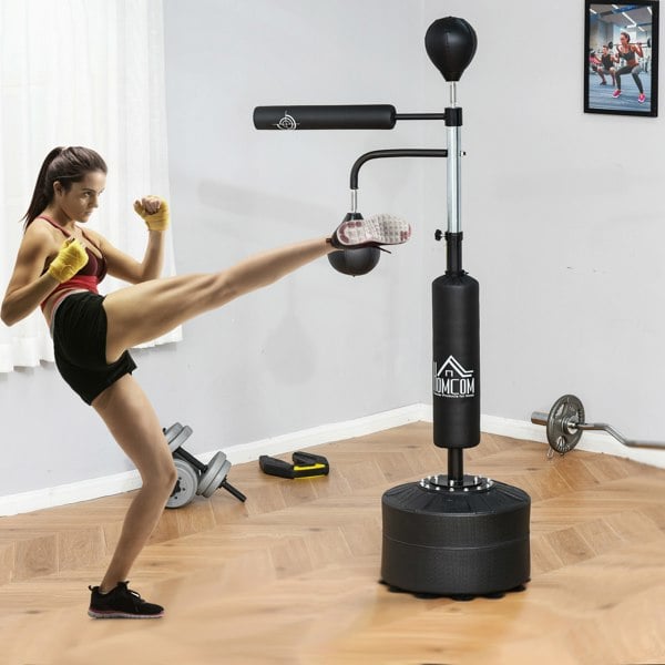Jabs, hooks, uppercuts, feints and footwork – you'll master all this and more with SPORTNOW's free standing punch bag. Featuring two speedballs, a 360° reflex bar and a boxing bag, it lets you mix up your training, keeping sessions fun and exciting. Fill the base with sand or water for added stability and adjust the height to fit various users. Sharpen your skills and stay fit in any space you desire!