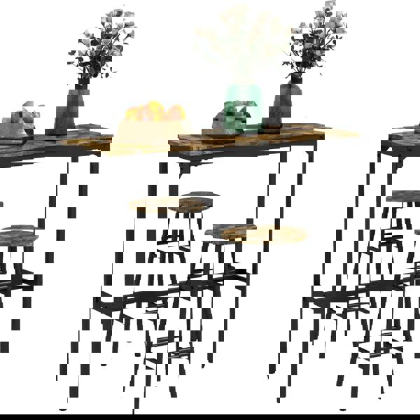 Bring a clean, industrial look to your kitchen or dining space with the HOMCOM 3 Piece Bar Set. Finished in rustic brown and black, this three-piece set pairs a tall table with two matching bar stools, creating a coordinated spot for everyday meals and casual entertaining.