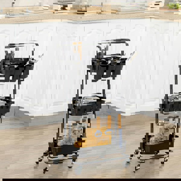 This HOMCOM rolling cart offers on-the-go storage, for whatever you want. Three-tier design, with three hanging boxes and four hooks give you plenty of holding room. A steel frame for a reliably strong structure, fitted with four wheels and a handle to move around easily