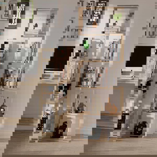 Tired of the same old look? Break away from the norm with the unique and contemporary style of this S-shape bookcase from HOMCOM. Five shelves of storage make it easy to display your favorite books, photos, collectables and more. Best of all, thanks to an open-back design, it doubles as a bookshelf and room divider.