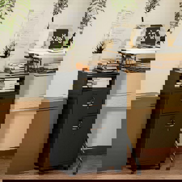 The HOMCOM 60cm filing cabinet is a versatile storage unit designed to help keep paperwork and everyday items organised in a home office or around the house. With drawers and an open shelf, it offers practical space for storing and accessing essentials.