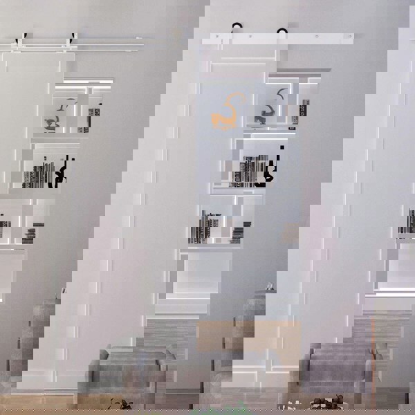Add beauty and charm to any living area with a highly decorative and easy to install HomCom sliding barn door hardware kit.