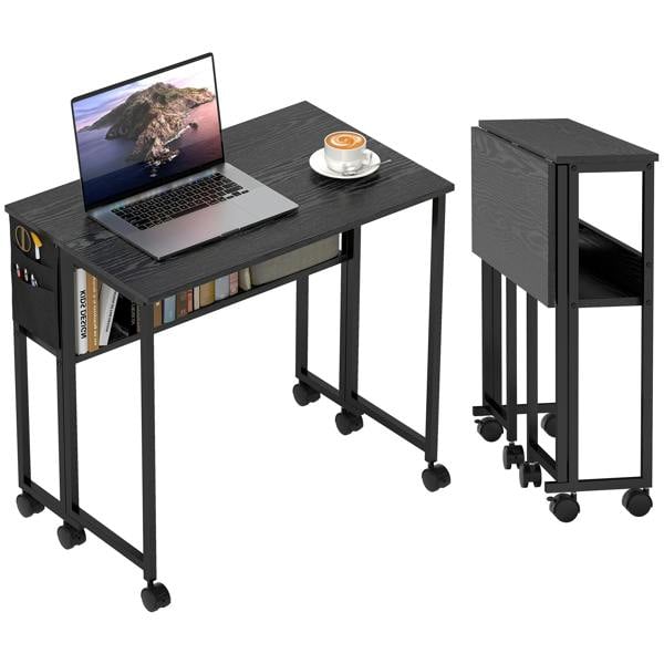 Maximise work space, even in small spaces with this HOMCOM drop leaf computer table. When folded, it is 21 cm and extends to 50 cm - plenty of room for you to work. Features a lower shelf and side bag for close-by holding space for all the essentials. Plus, you can wheel this study desk anywhere with ease, thanks to six 360° swivel casters - complete with four brakes.