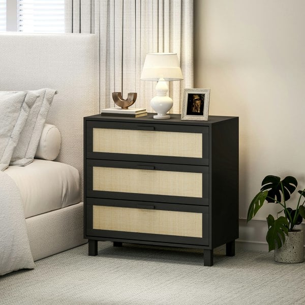 Bring the natural beauty into your inside styling with this tallboy chest of drawers from HOMCOM. Here we see woven rattan panels on each drawer, playing contrast to the smooth wood-effect of the structure. The bedroom chest of drawers features three drawers and a flat table top, so there's plenty of storage room. Finished with four small feet to elevate and long handles to open and close the drawer unit easily.