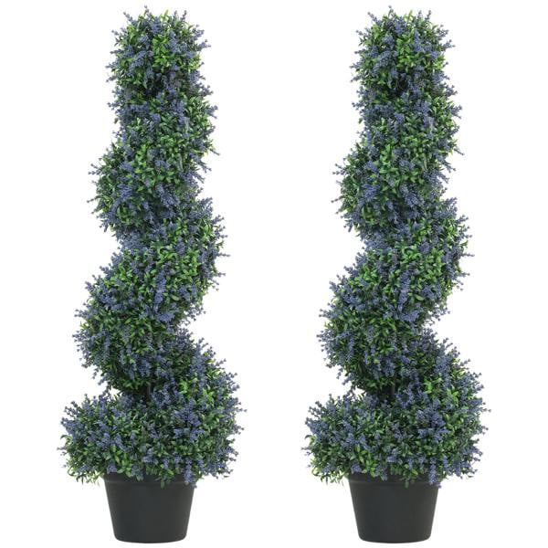 Bring a considered touch of greenery to your space with the HOMCOM Artificial Lavender Topiary Tree, a set of 2 designed to add colour and structure indoors or out. Each piece features a distinctive spiral silhouette finished with rich purple blooms, offering an elegant accent for doorways, patios and interior spaces where you want lasting style without ongoing upkeep.