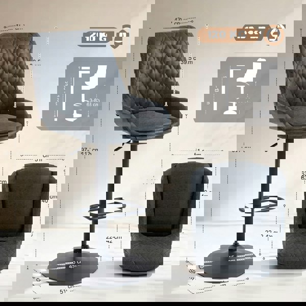 A stylish look for your kitchen dining spots with these HOMCOM bar stools. Faux leather upholstery for a beautiful look. Padded seat and high back to keep you comfortable and supported. A metal base for strength and keeping you supported, the height is adjustable between 63-83cm: set to a level best for you. Completed with a lower footrest.