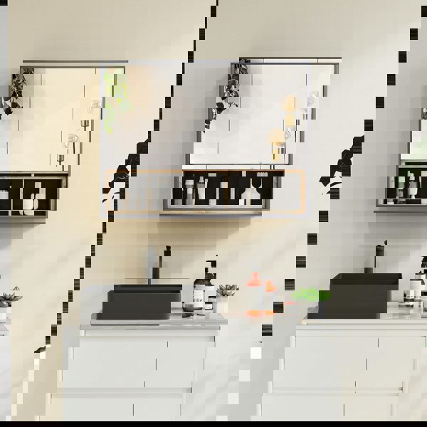 Featuring eight cleverly designed compartments, including six upper sections and two spacious bottom shelves, this bathroom cabinet with mirror keeps essentials tidy.