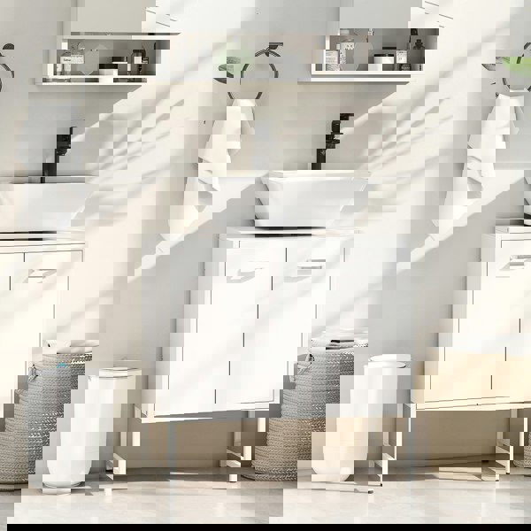 Transform your bathroom with the under sink bathroom cabinet from HOMCOM, cleverly designed to fit around most basins with its 20 x 20 cm U-shaped slots. Enjoy the quiet of soft-close hinges that prevent door slamming and optimise your space with adjustable three-level shelving behind double doors. The HOMCOM under sink storage cabinet is a great solution for any bathroom.