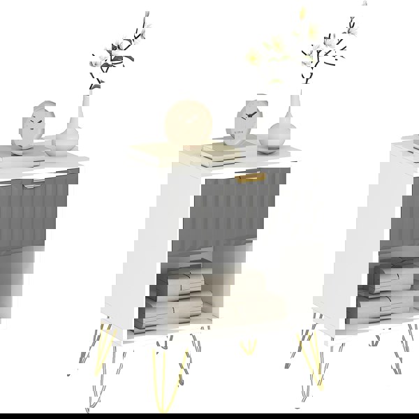 Keep your bedside storage simple and beautiful with this modern HOMCOM bedside table. Three-part storage, formed of the flat countertop, a shelf and drawer to keep what you need right next to you. Also suitable as a side table for the living room and office and more. Crafted from particle board and MDF with solid steel legs, it's built to last. The coated surface and 15-centimeter gap clearance make it easy to clean. Plus, the drawer comes with a convenient handle for smooth opening and closing.