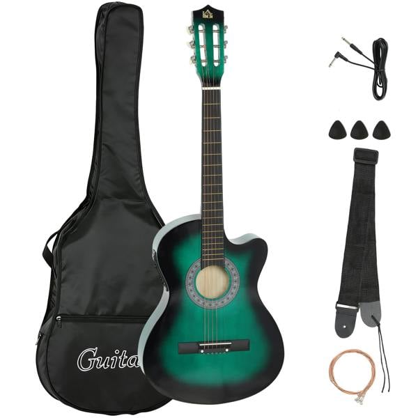 Designed for new players, the HOMCOM Beginner Acoustic Electric Cutaway Guitar is a complete 38 inch set that suits both beginners and students. Finished in dark green and black, it pairs a classical guitar body with a cutaway shape and a user-friendly fretboard, helping you get comfortable as you build confidence and technique.