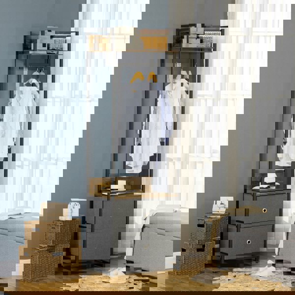 Clothes organisation made easier than ever - this freestanding clothes unit from HOMCOM. The design forges a 46cm clothes rail with two bottom drawers and a top shelf - hang dresses, shirts and coats