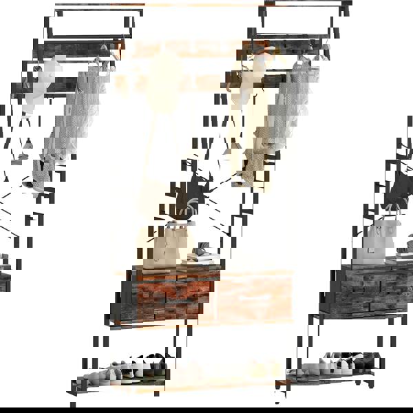 An easy and stylish solution to hallway and home clutter, with this HOMCOM hall tree. Made with a metal frame for a strong, reliable core, it combines a hanging rail, shoe bench, shoe rack, top shelf, fabric drawers and coat hooks: keep all coats, shoes and other accessories in a single place. The ten removable hooks allow you to place and put where you need. Thanks to the bold industrial-style design, you can be assured your home will be looking on point every day and night.