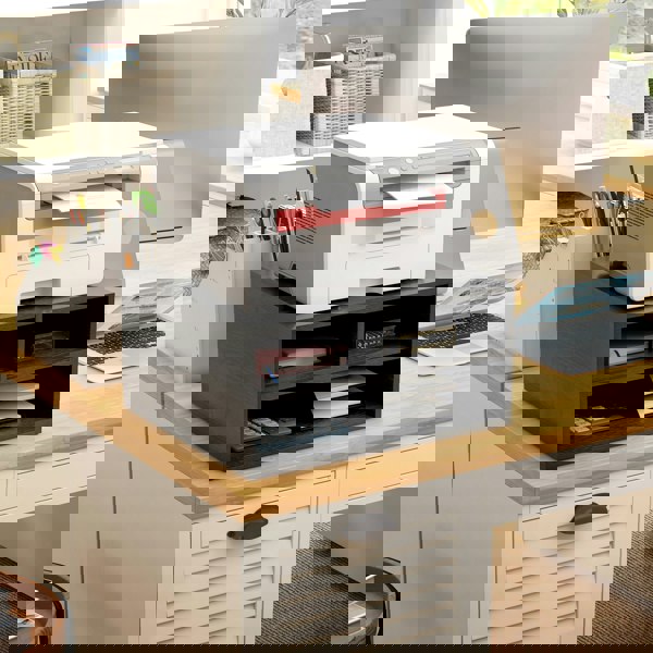 This HOMCOM desktop printer stand is designed to keep your workspace organised, with three open compartments for storing paper and other office essentials. A flat top surface provides a practical platform for a printer, scanner or similar device, helping you make better use of desk space while keeping key items close to hand.