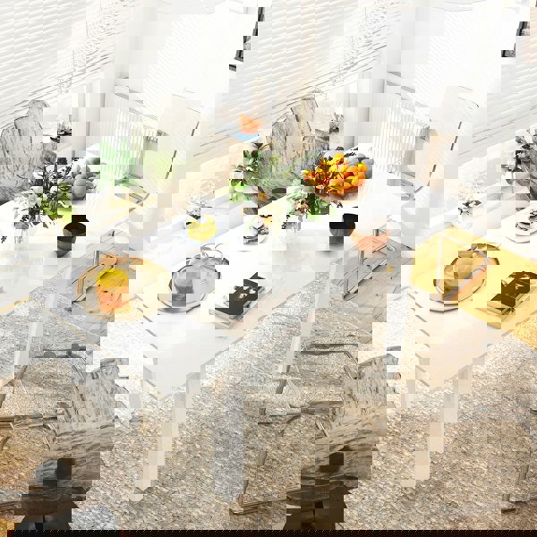 With a simple movement, this HOMCOM dining table extends from 120cm to 160cm - hosts up to six people. The high gloss finish makes this a sleek and modern piece, that you'll love having as centrepiece to meals, morning through to night. Made from sturdy MDF so it's suitable for everyday use, complete with four legs for plenty of balance.