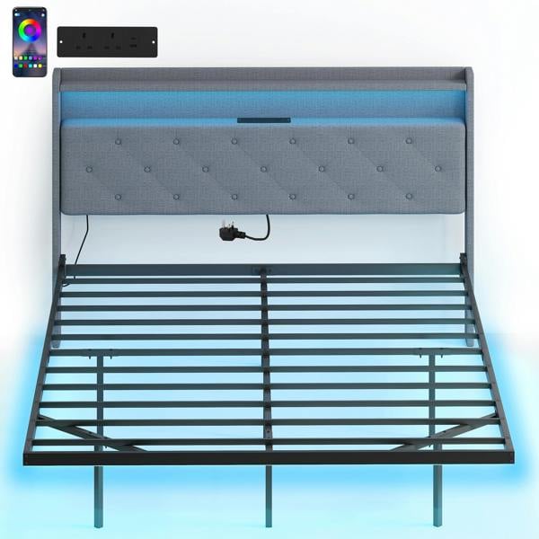 Say goodbye to clutter and boring bedrooms! The HOMCOM bed frame seems to float, with dynamic RGB LED lights that pulse to your music, while the soft upholstered headboard invites cosy reading, movie nights, or relaxing moments. Built-in charging ports and a two-tier shelf keep devices and essentials close, and the stable, quiet frame with 25 cm under-bed clearance adds comfort and smart storage for a truly modern, organised space.