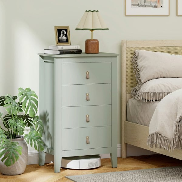 Experience the robust durability of our drawer chest, crafted from particle board meeting E1 standards for reliability and safety. Its modern style and elegant design seamlessly enhance your home decor, while offering spacious storage drawers to keep your belongings organised. Enjoy the quiet glide of the drawers, ensuring a smooth and comfortable user experience, making it a great addition to any bedroom.