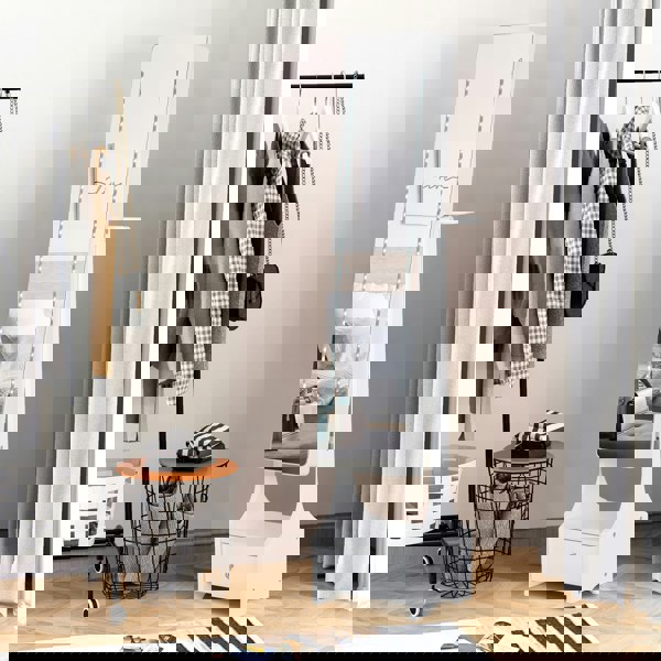 Dimensions: 158H x 37W x 30Dcm. Mirror: 120L x 30Wcm. Inner storage: 120H x 30W x 10Dcm. Bottom drawer: 9.5H x 22.5W x 27.5Dcm