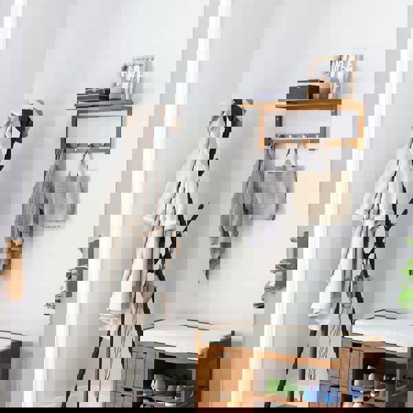 This coat rack from HOMCOM is designed to keep your daily essentials in order and easy to access while saving more space. This is a multifucntional item which can be used in the kitchen or the bathroom to hangs towels and place daily essentials. Made of natural material with 4 galvanized coats hooks, it's sturdy enough to hold your clothes, hat, scarves, umbrella, keys etc. A modern and practical wall mounted unit for use in the home to match your needs.