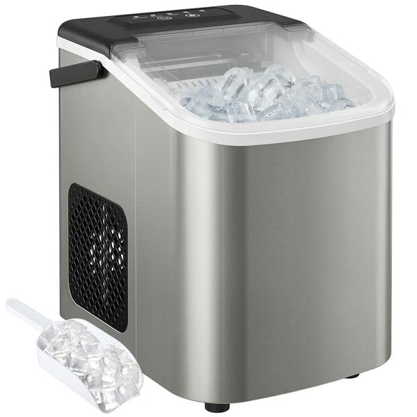 Bring a steady supply of ice to the kitchen with the HOMCOM countertop ice maker machine, finished in brushed stainless steel with silver tone and black detailing. Compact in size at 28.3L x 22.6W x 29.9H cm, it includes a carry handle for easy portability and a clear viewing window for checking progress at a glance.