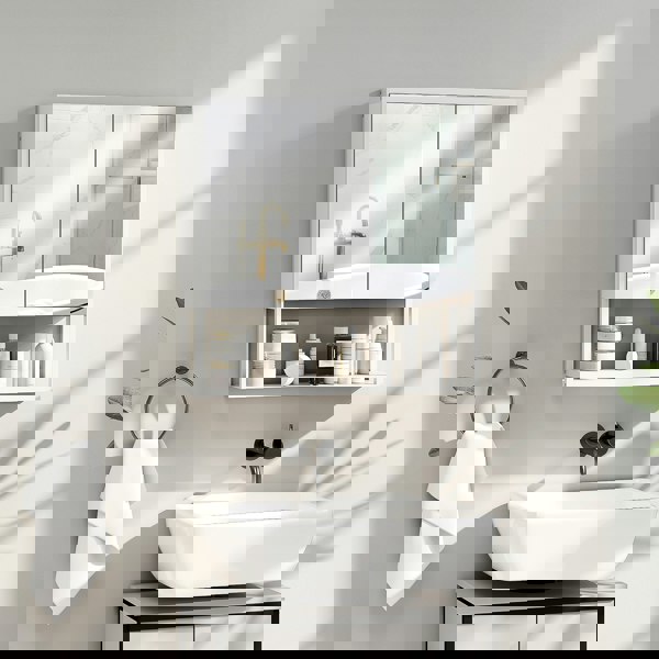 In the hustle of daily life, abrupt slamming and cluttered spaces can disrupt your peace. The HOMCOM bathroom mirror cabinet with soft-close doors offers a serene solution, preventing noise and finger pinching. The adjustable shelf inside the mirrored bathroom cabinet provides tailored storage for your essentials, adapting as your needs evolve. The industrial elegance of this bathroom cabinet with mirror enhances your space, creating a tranquil retreat for unwinding.