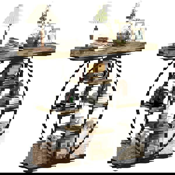 Tired of a cluttered, uninspiring entryway? A messy first impression can make your whole home feel chaotic. This HOMCOM entryway table with storage transforms your space. Its bold industrial design and vintage-style shelves make a statement, while the thick tabletop easily supports heavy decor. Six open shelves on this console table neatly organise your essentials, creating a welcoming and stylish first impression that you and your guests will appreciate every day.