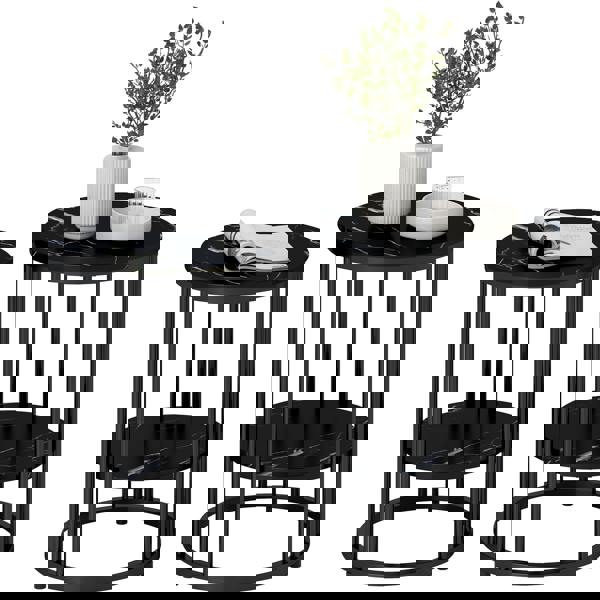 A beautiful addition to the everyday with this HOMCOM two-piece coffee table set. Both tables come in a two-tier design, offering plenty of holding space. This marble-effect tops, paired with the black legs mean an elegant look. With a steel frame for a strong core, the living room tables are complete with adjustable feet for balance.