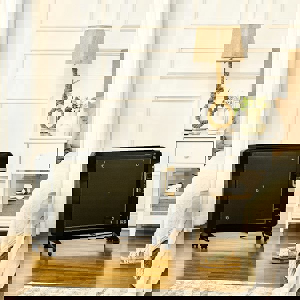 Say hello to a warmer place at home with this portable convector heater, from HOMCOM. It's fitted with a 18-30°C adjustable thermostat so you can keep warm at a constant temperature. The 1000W and 2000W setting means it's easy to switch to switch the power to milder or stronger. A sleek and stylish piece you'll love having around, it's fitted with Mica-glass panels which are able to withstand high temperatures - keeping you safe. Comes with a remote to control from distances.