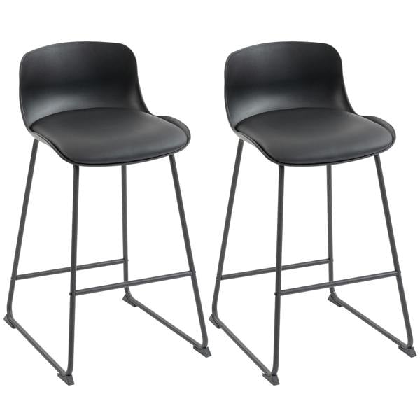 Designed for streamlined kitchen and dining spaces, this set of 2 HOMCOM bar stools brings a clean, modern look with a black PU leather seat and matte metal legs. Generous cushioning supports comfortable everyday seating, while the smooth PU surface keeps upkeep simple.