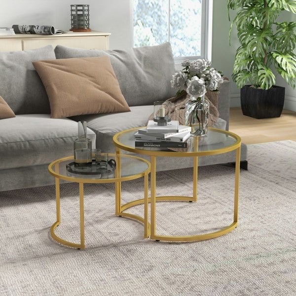 Add a modern style and bring storage function to your living room or office with this glass coffee table set from HOMCOM! It comes with a small table and a bigger one, both can be nested together to save space. Tempered glass table top is particularly shock-resistant. It also can be easily re-shined by wiping it with a damp cloth followed by a dry cloth. Take the multifunctional nesting tables home and instantly upgrade your home.