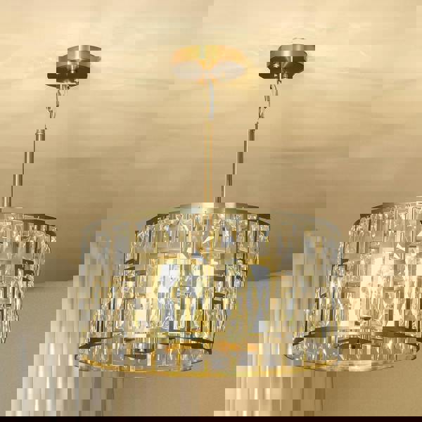 A forever-sparkling centrepiece for all over your home - this HOMCOM ceiling light offers both flush mount and hanging chandelier options, fitting any room. A strong metal frame, formed into a grid design with 72 glass crystallite pieces placed throughout - allowing the light from the three bulbs to shine through and glisten: a beautiful centrepiece for hallways, bedrooms livings rooms - and wherever else you want.