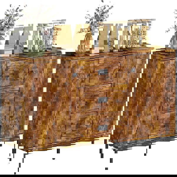 Quickly add storage, in timeless style - this HOMCOM sideboard. The warm rustic brown delivers a modern look to your living space. It has two cupboards and three drawers, so there's plenty of storage for keeping what you need neatly stored and out of sight. The adjustable shelves allow you to fit smaller and items with ease. Complete with an anti-tipping kit for safety.