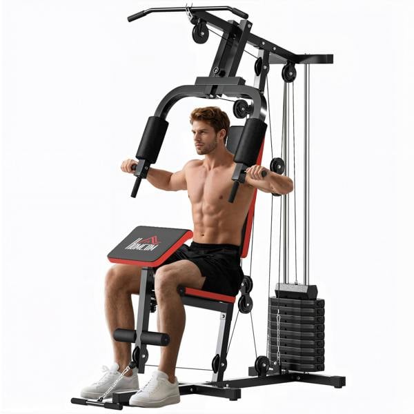Designed for at-home strength training, the HOMCOM Multi Home Gym Machine in black brings a versatile range of exercises into one compact set-up. Built from steel and PU, it supports a varied routine that targets multiple muscle groups, making it a practical choice for anyone looking to train across the upper and lower body without switching between separate pieces of equipment.